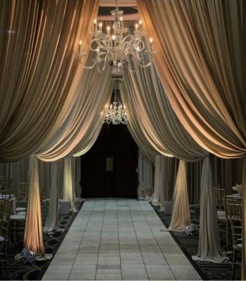 Moreover, our ballroom curtains’ track systems allow endless setups. Full room coverage. Room dividers. Backdrop-only setups. These aren’t just decorations. They’re working venue tools that elevate bookings.