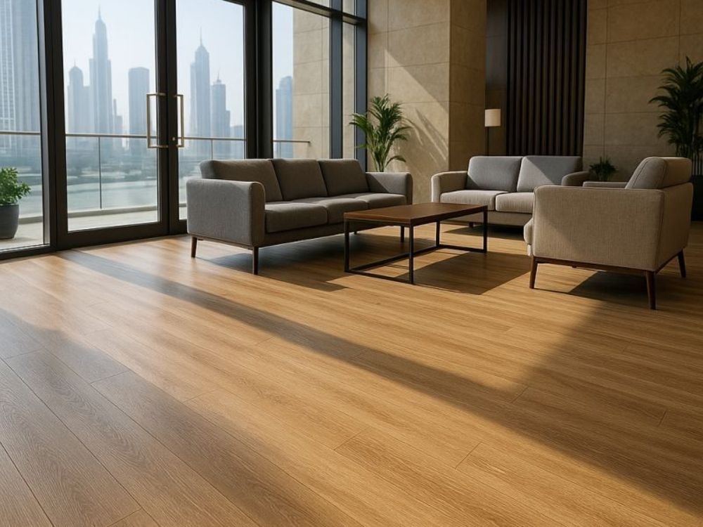 LVT flooring stands for Luxury Vinyl Tile flooring. It is a high-quality vinyl flooring option designed to look like natural wood or stone while offering better durability, water resistance, and comfort. LVT is commonly used in homes, offices, retail spaces, and commercial interiors across Dubai due to its modern appearance and low maintenance needs.
